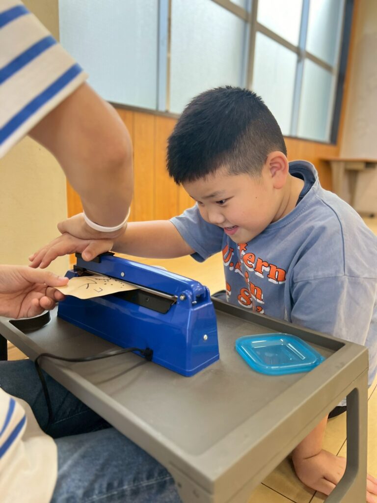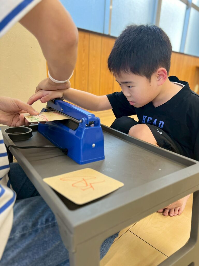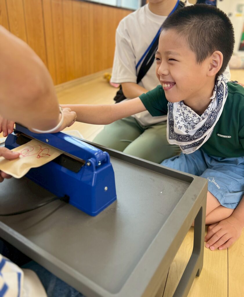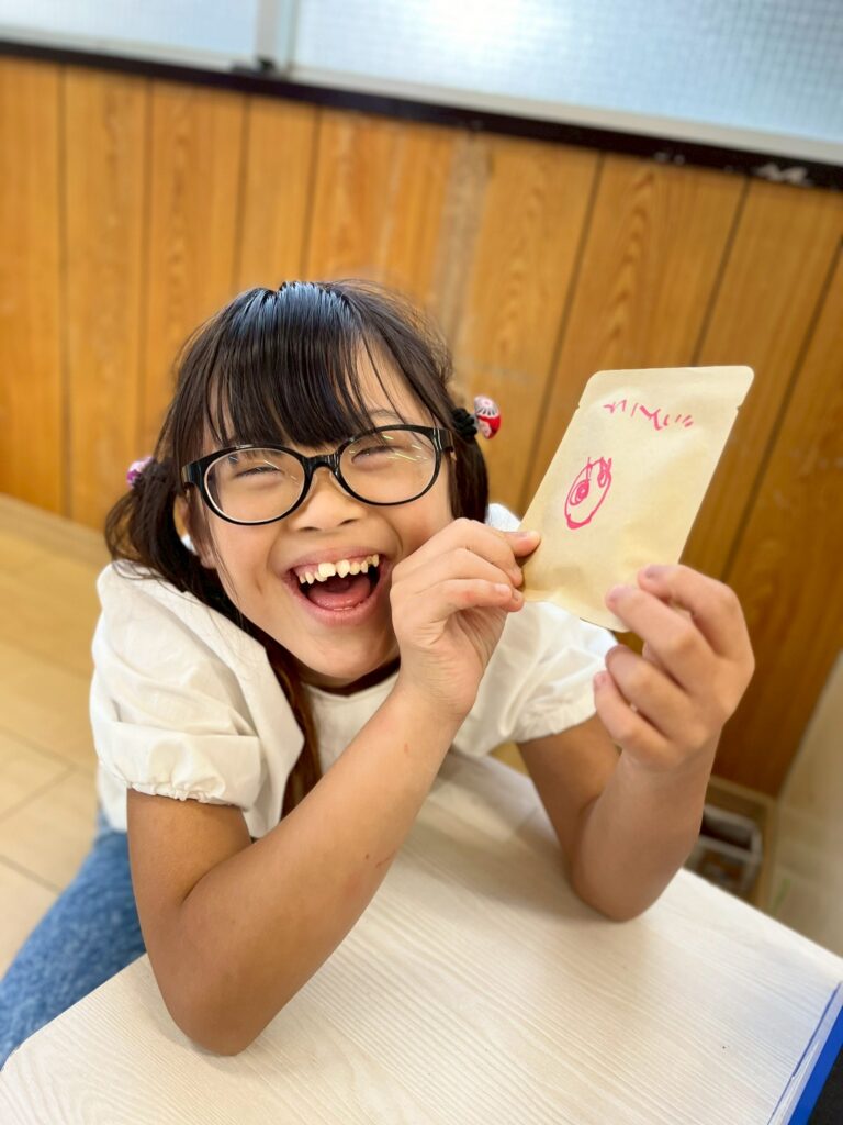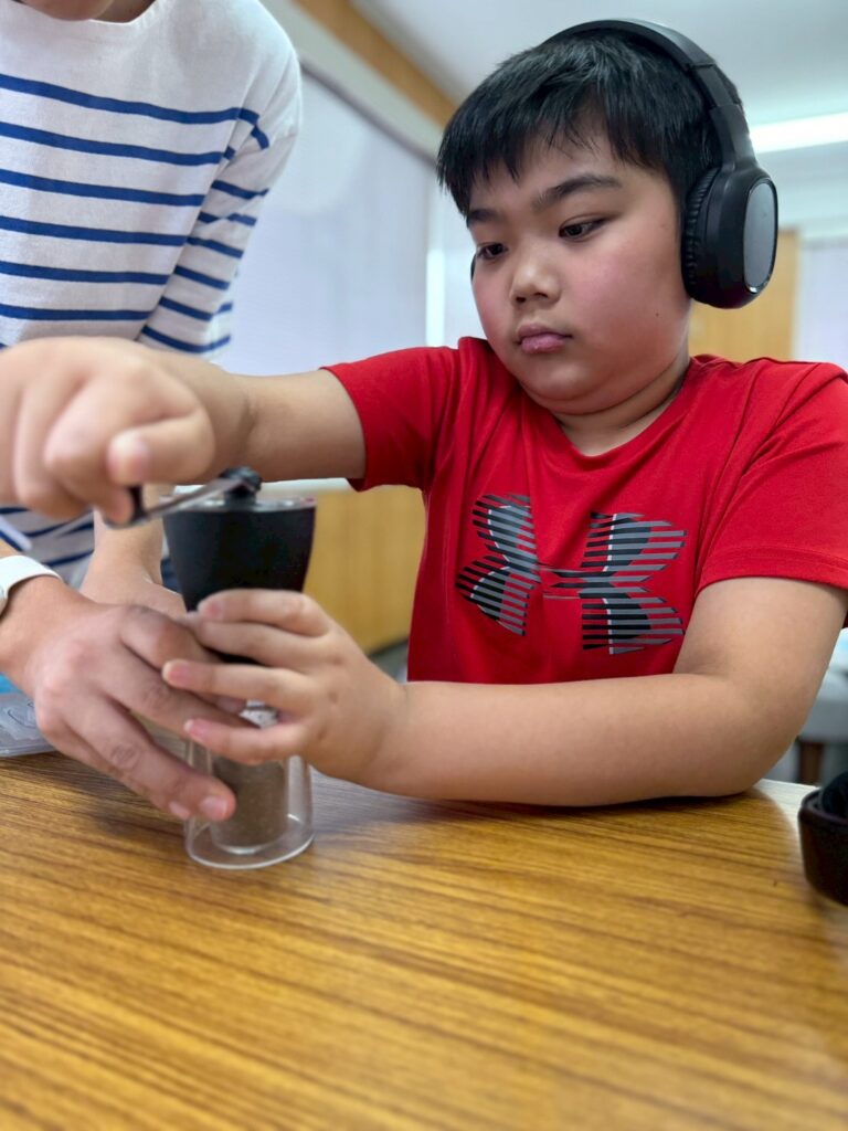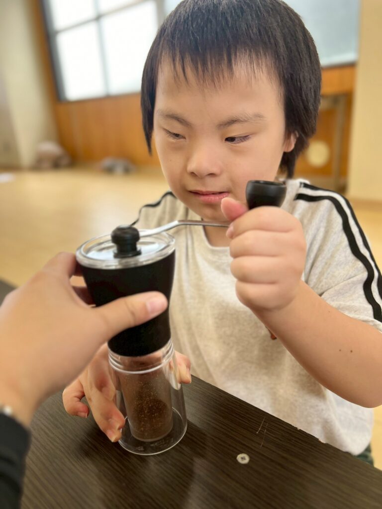 カララ寿町活動写真(令和7年9月29日~10月3日) カララの活動 カララ寿町 2025年10月10日 焙煎していただいたコーヒー豆をミルで挽きました。その後は、子どもたちがデザインした袋にドリップパックを入れ、シーラーを使って密封しました。完成したパックを嬉しそうに眺める姿も見られ、中には「パパ、ママ」と言いながら、早く持ち帰りたい気持ちを表す子もおり、持ち帰れることが分かると嬉しそうにカバンにしまっていました。 こうして、子どもたち一人ひとりの思いが詰まった“世界に1つだけのコーヒー”が出来上がりました。 前の記事 次の記事