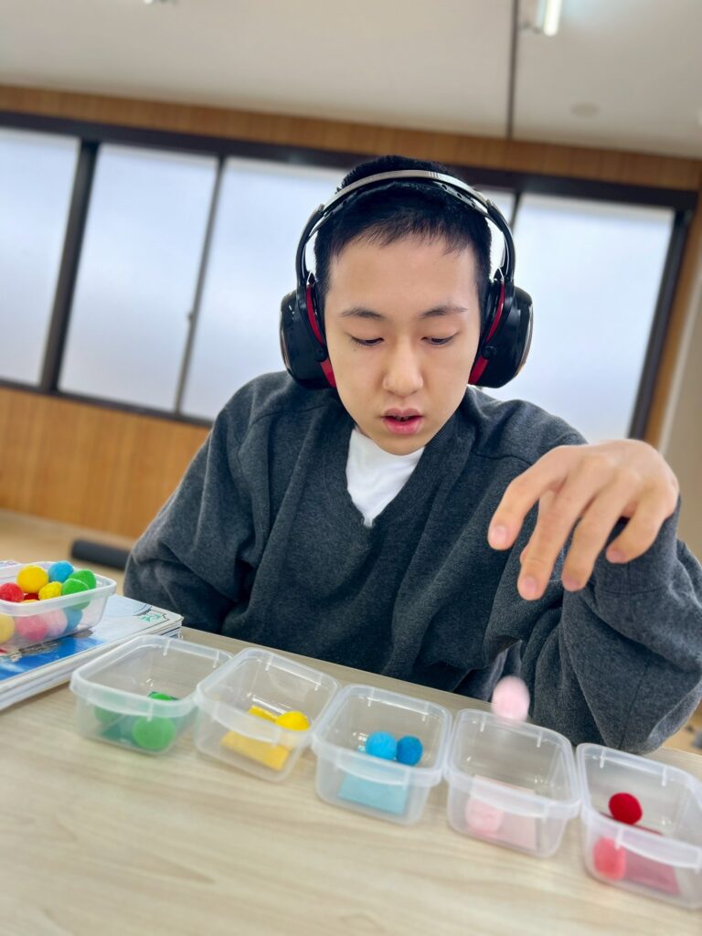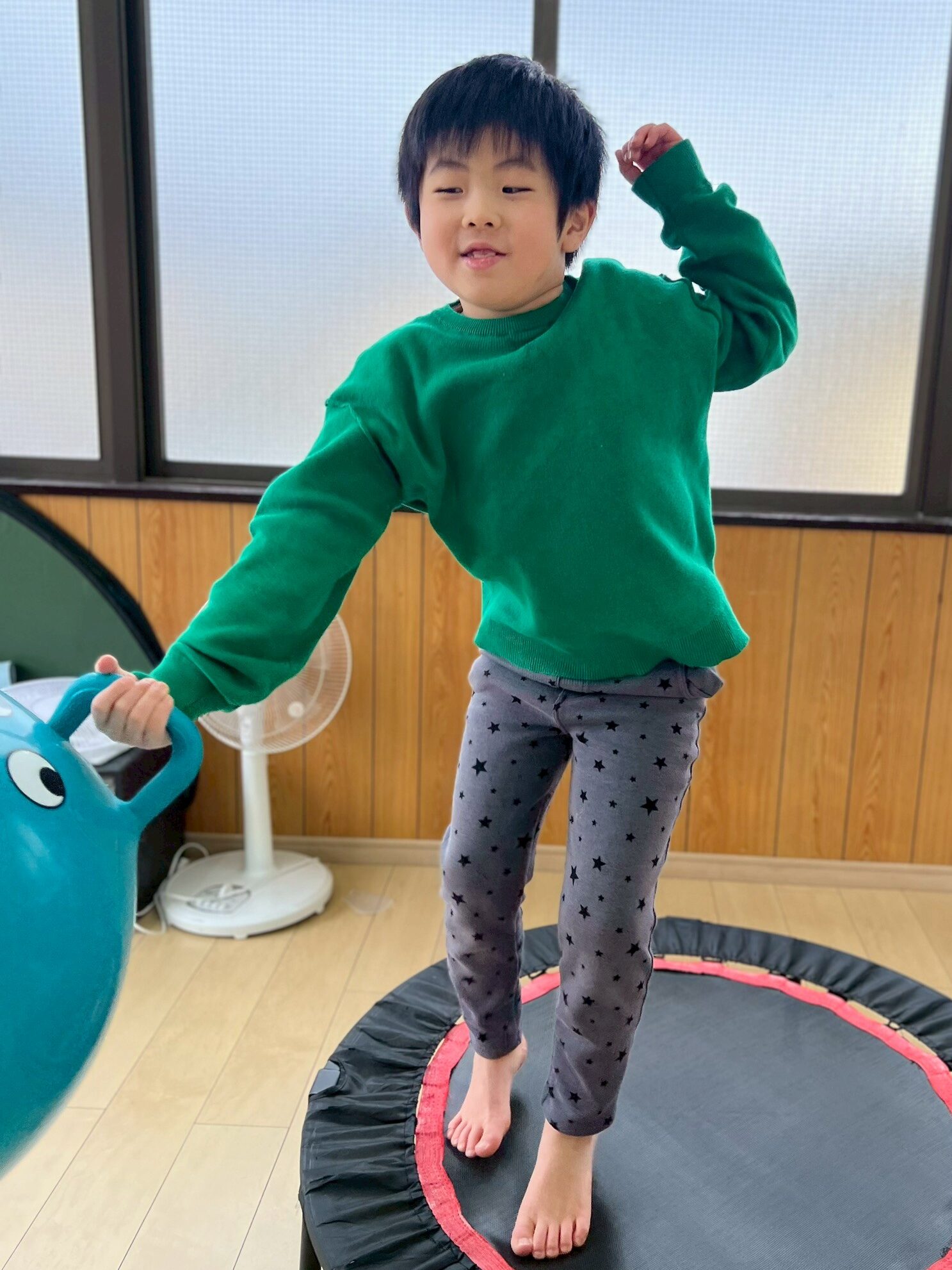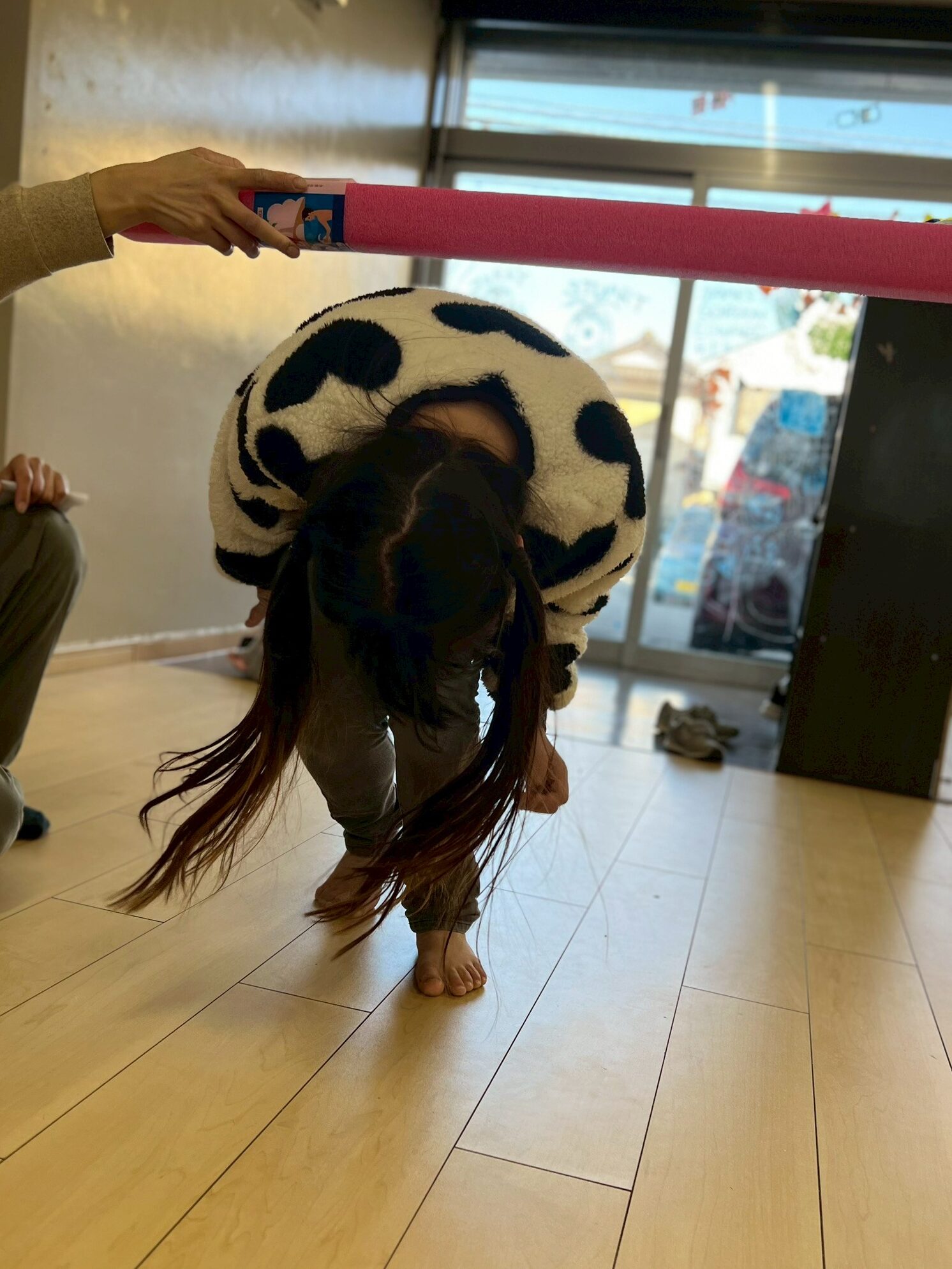 スティックに当たらないようにジャンプしたり、くぐったりと、身体をたくさん動かしながら楽しむ姿が見られました。動いているスティックをよく見て、その場でタイミングよくジャンプしたり、当たらないように素早く逃げてみたりと、さまざまな遊び方を工夫しています。活動中は、あちこちから楽しそうな声や笑顔があふれていました。