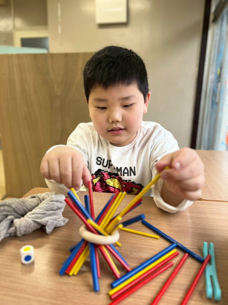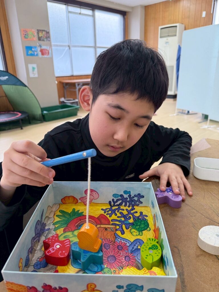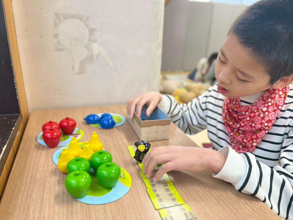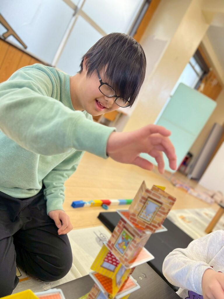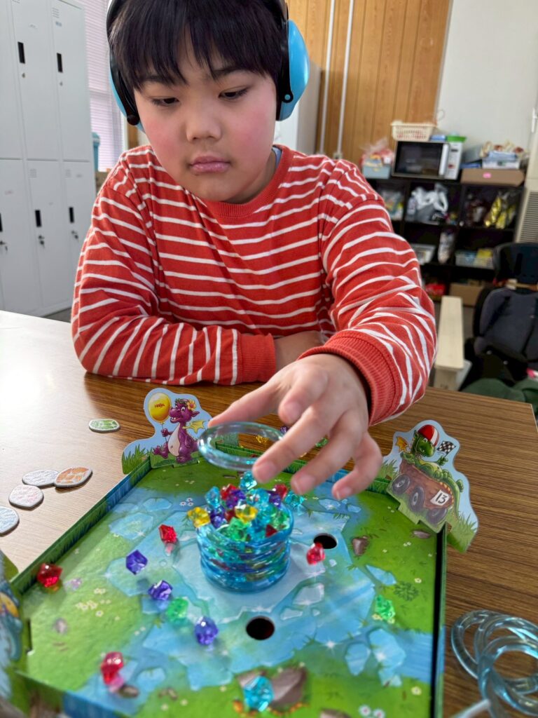また、最近はアナログゲームを活動に取り入れています。個々に集中して取り組む姿や、友だちとやり取りを楽しみながら参加する姿が見られます。職員が間に入りながらルールを分かりやすく伝え、段階を調整することで、無理なく参加できるようにしています。楽しさを大切にしながら、やりとりや集中する時間を広げていけたらと思います。